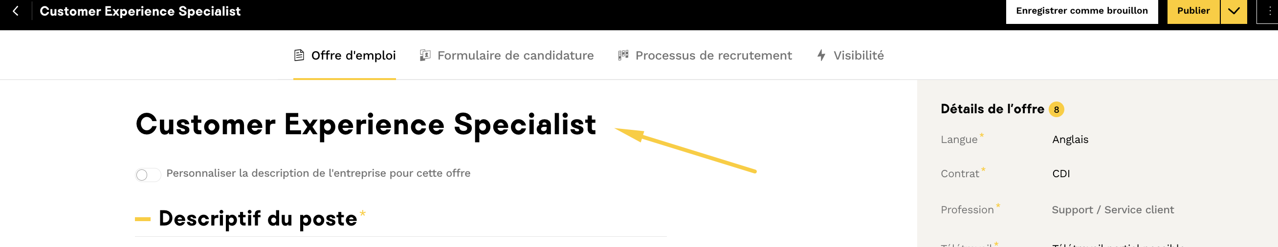💡 L'URL d'une offre est définie en fonction de l'intitulé de poste renseigné au moment de sa création et demeure ensuite figée afin d'éviter les erreurs de redirection (erreur 404).