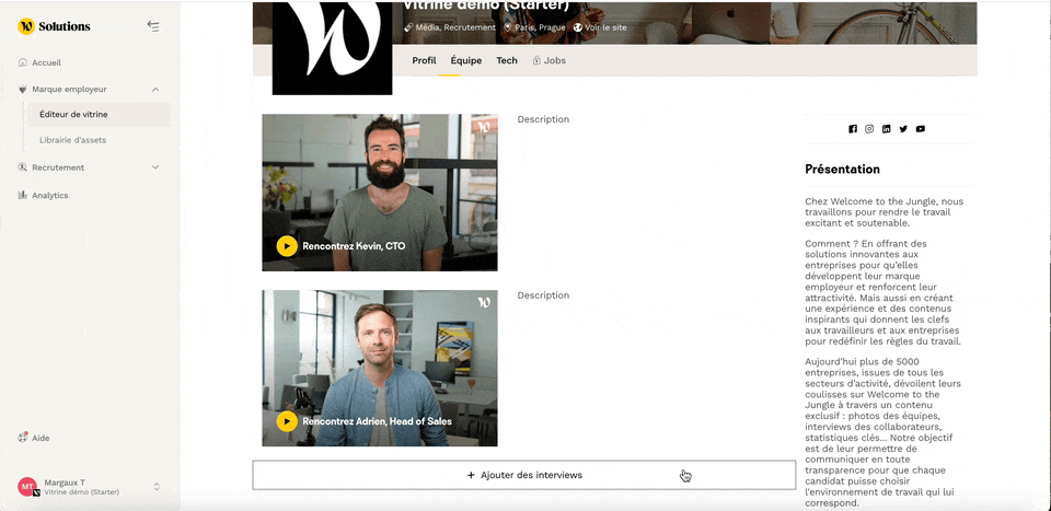 Important : Seuls les contenus de votre tournage Welcome to the Jungle sont disponibles.