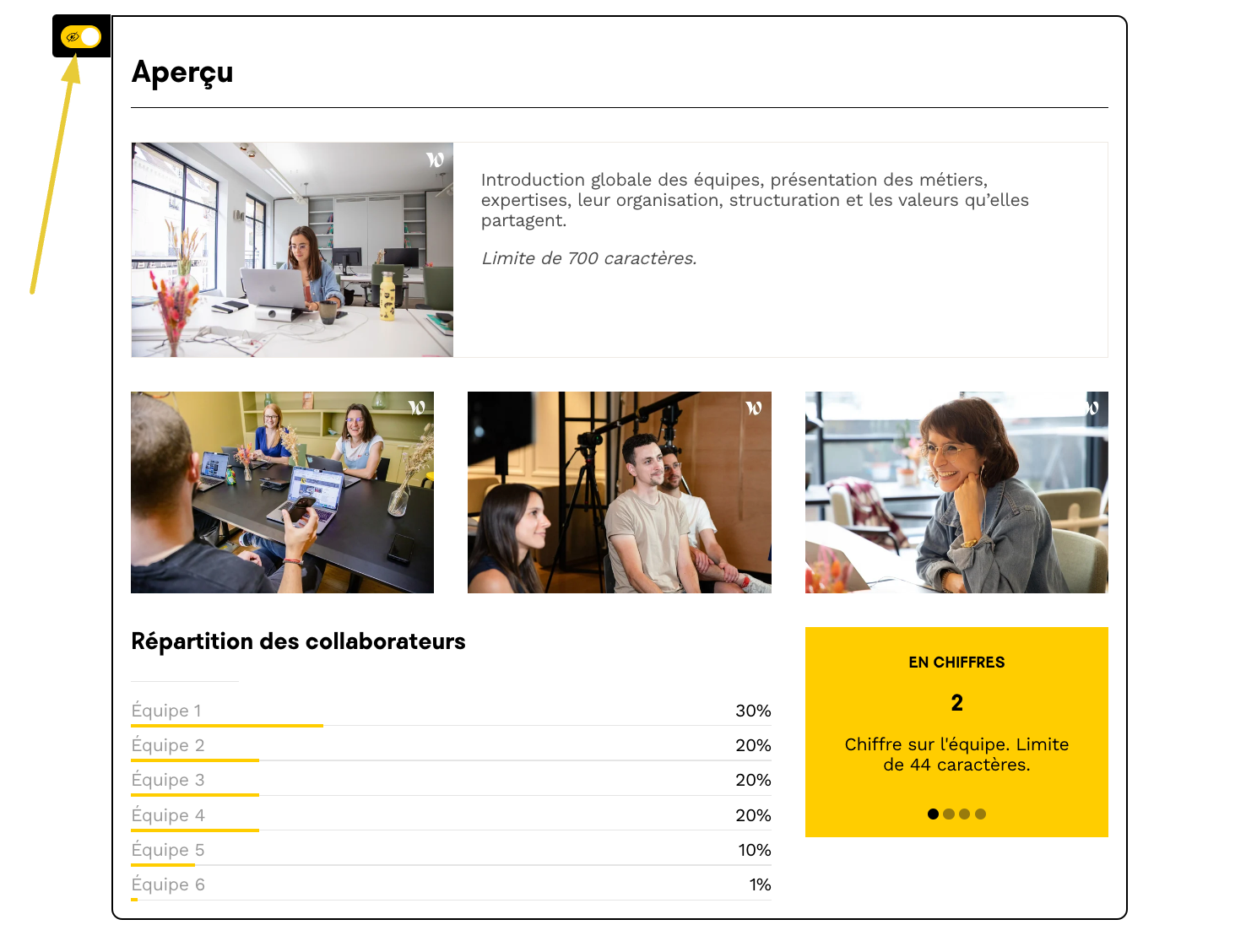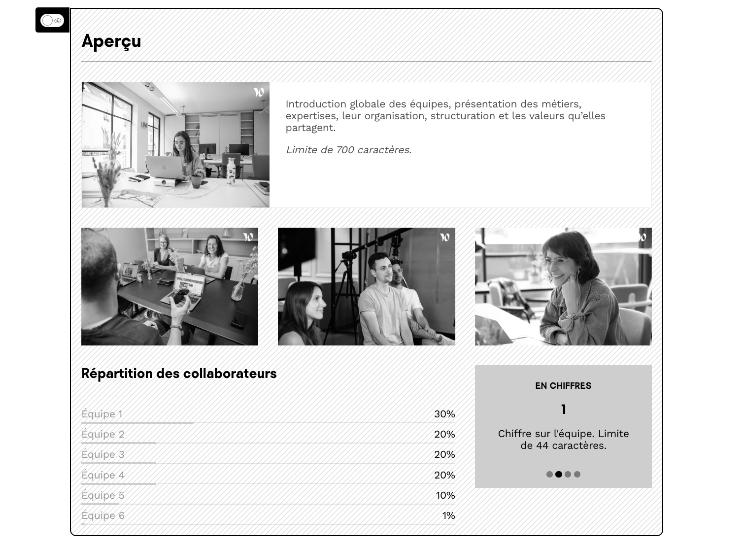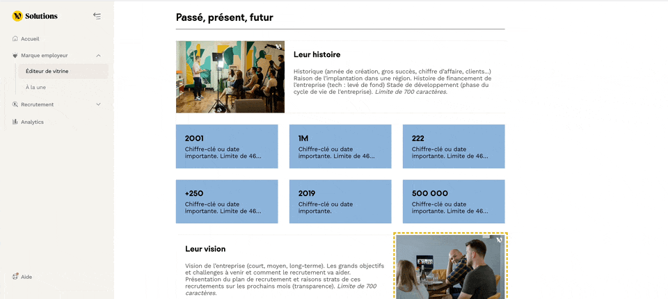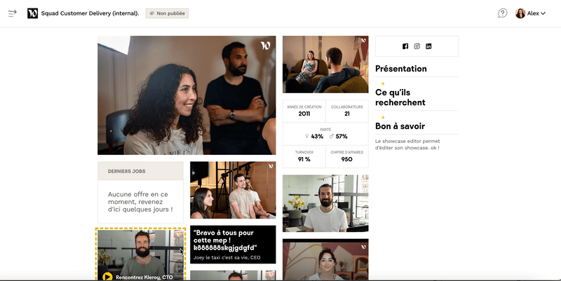 L'Ăditeur de vitrine de Welcome to the Jungle vous permet de personnaliser votre vitrine entreprise en toute autonomie. Que vous souhaitiez changer des photos, modifier des textes ou rĂ©organiser vos contenus, cette fonctionnalitĂ© vous donne le contrĂŽle !