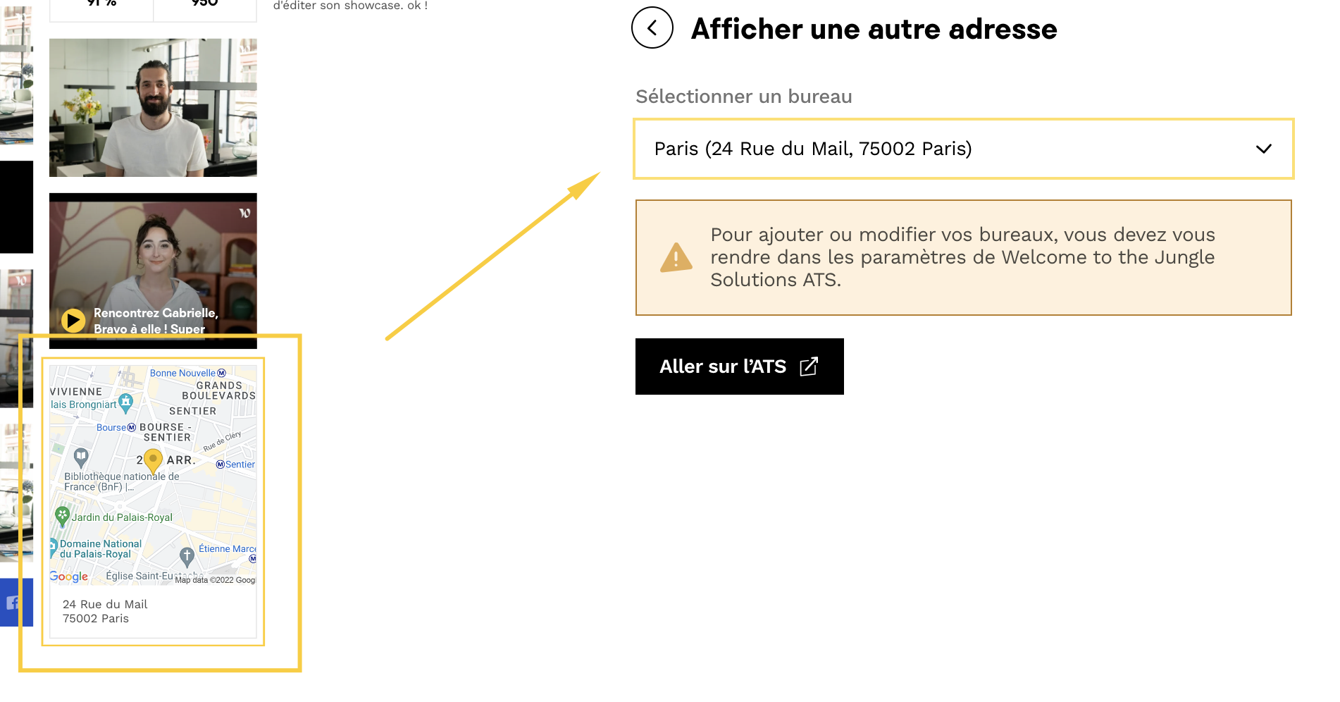 Si votre bureau n'apparaĂźt pas dans la liste, cliquez sur le bouton "Aller sur l'ATS" pour ajouter votre nouvelle localisation. Au cas oĂč, cet article vous indique comment ajouter un nouveau bureau sur Welcome to the Jungle Solutions : ATS.