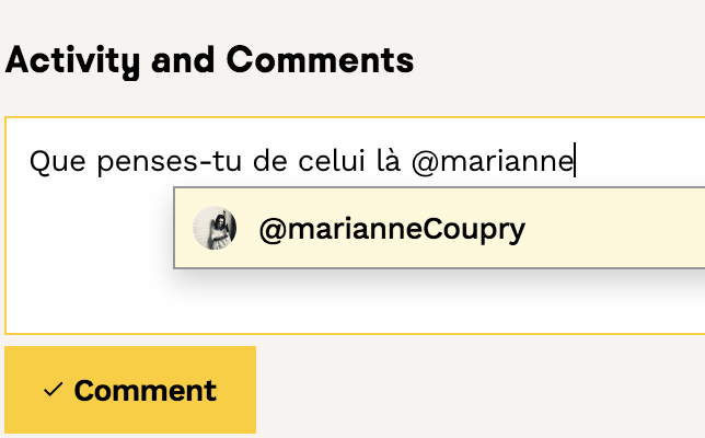 Welcome to the Jungle Solutions ATS favorise les échanges entre recruteurs au sein de l'outil, permettant d'échapper aux traditionnels échanges de CVs par mail, téléphone ou Slack. Actions collaboratives disponibles :- Commenter une candidature et attirer l'avis d'un collaborateur sur des points d'attention