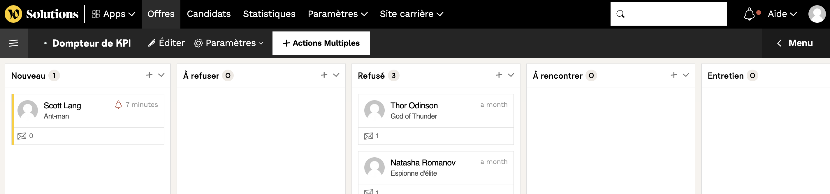 Par exemple, si chaque candidature fait l'objet d'un screening, puis d'un appel, puis d'un cas pratique avant l'entretien final, vous pourrez adapter les colonnes en conséquence. Profitez de l'adoption de Welcome to the Jungle Solutions ATS pour remettre à plat vos étapes de recrutement et vous débarrasser des étapes superflues.