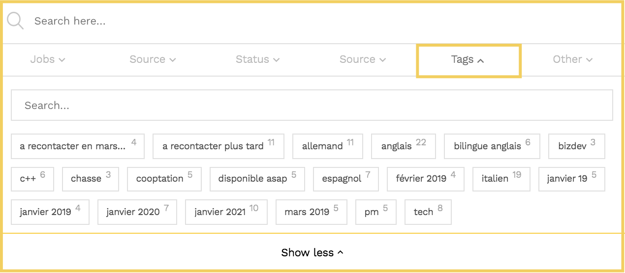 1. Utilisation des tags- Appliquez des tags sur les candidatures à potentiel
