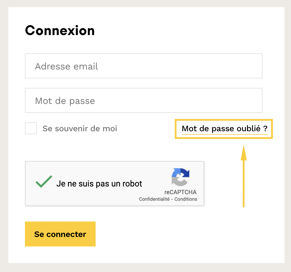 - Cliquez sur "Réinitialiser mon mot de passe"