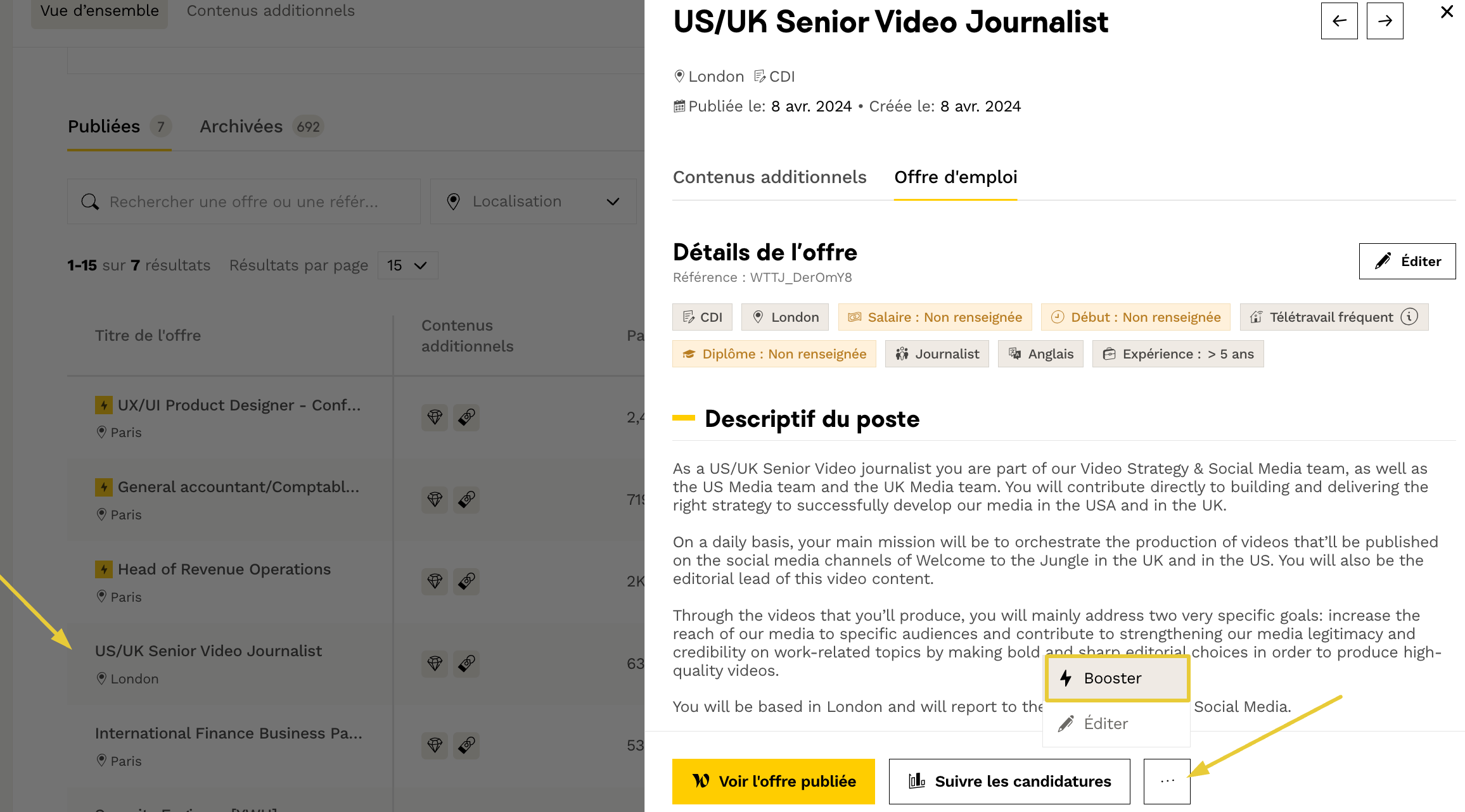 Il existe trois méthodes pour sélectionner et booster une offre d'emploi :