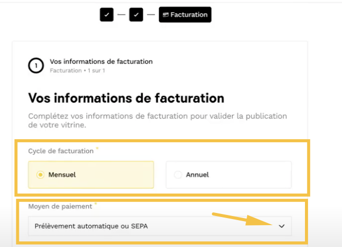 Ici, vous pourrez valider votre cycle de facturation et votre mode de paiement :