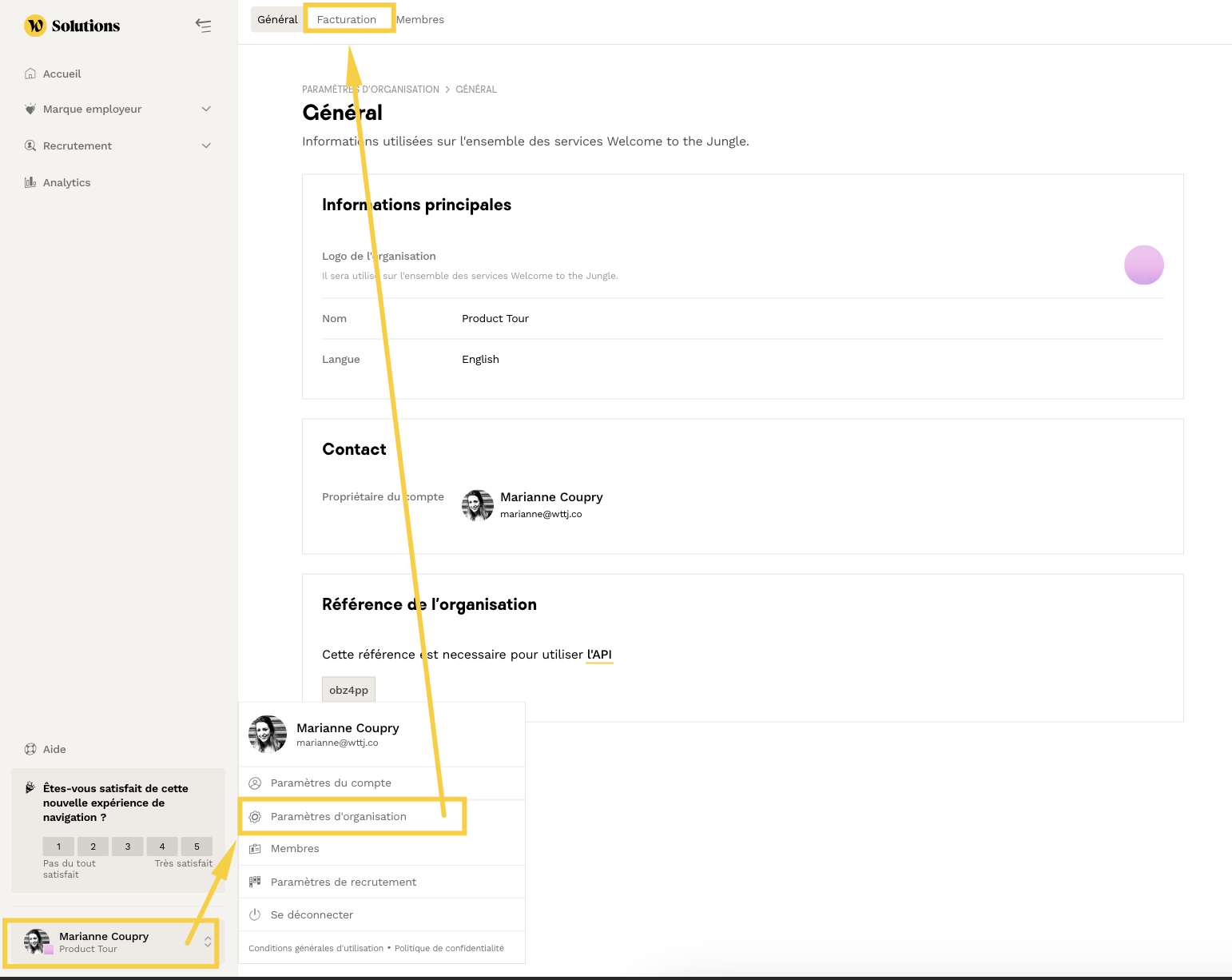 ✨ Vous avez renseigné les informations de votre organisation, vos chiffres clé ainsi que les textes de présentation de votre entreprise ? À présent, il est temps de finaliser la première phase de votre Onboarding en ajoutant vos informations de facturation !