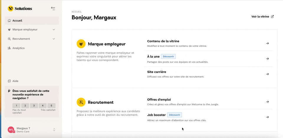 - Les accès à Employer Brand (Analytics, Job booster, et À la une)