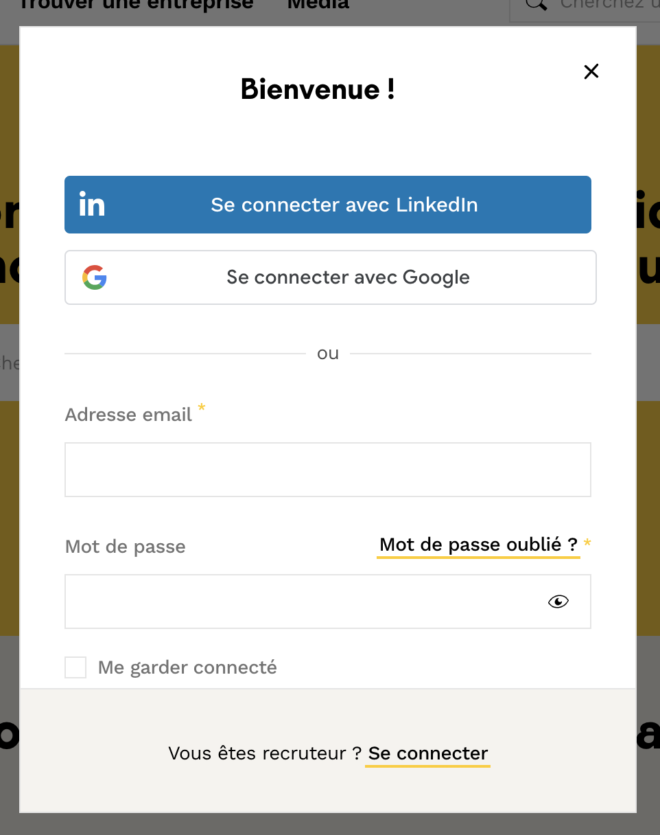 💡 Si vous avez oublié votre mot de passe, et vous n'arrivez plus à vous connecter à votre compte Welcome to the Jungle, cet article est fait pour vous !