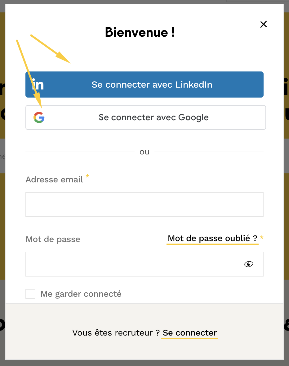 Peut-être lors de la création de votre compte avez-vous procédé à une inscription avec vos identifiants Linkedin ou votre compte Google ?