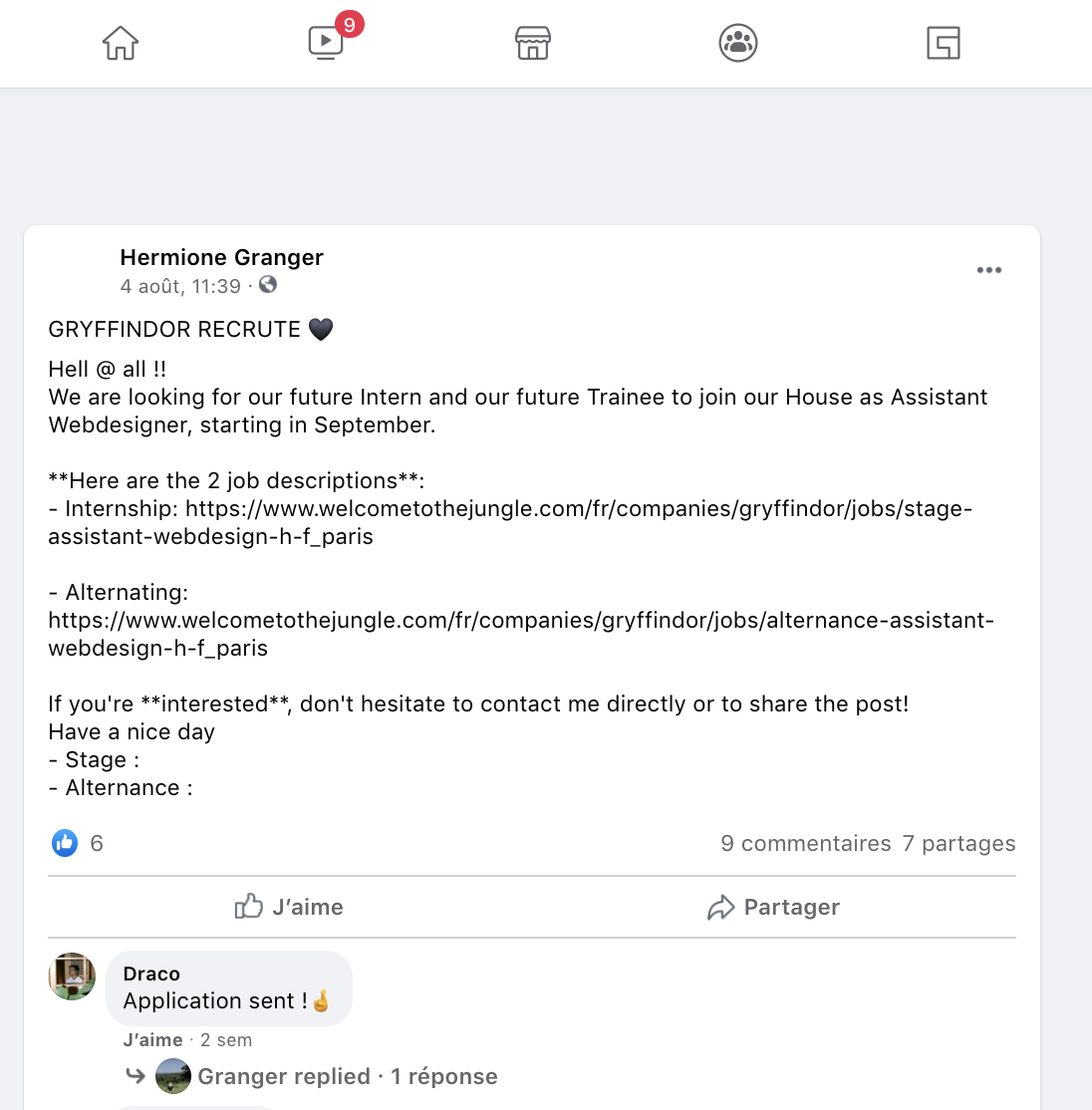 L'ensemble de vos collaborateurs sont vos meilleurs ambassadeurs. Demandez à chacun de partager les liens des offres si vous avez besoin d'accroître la visibilité de celles-ci.