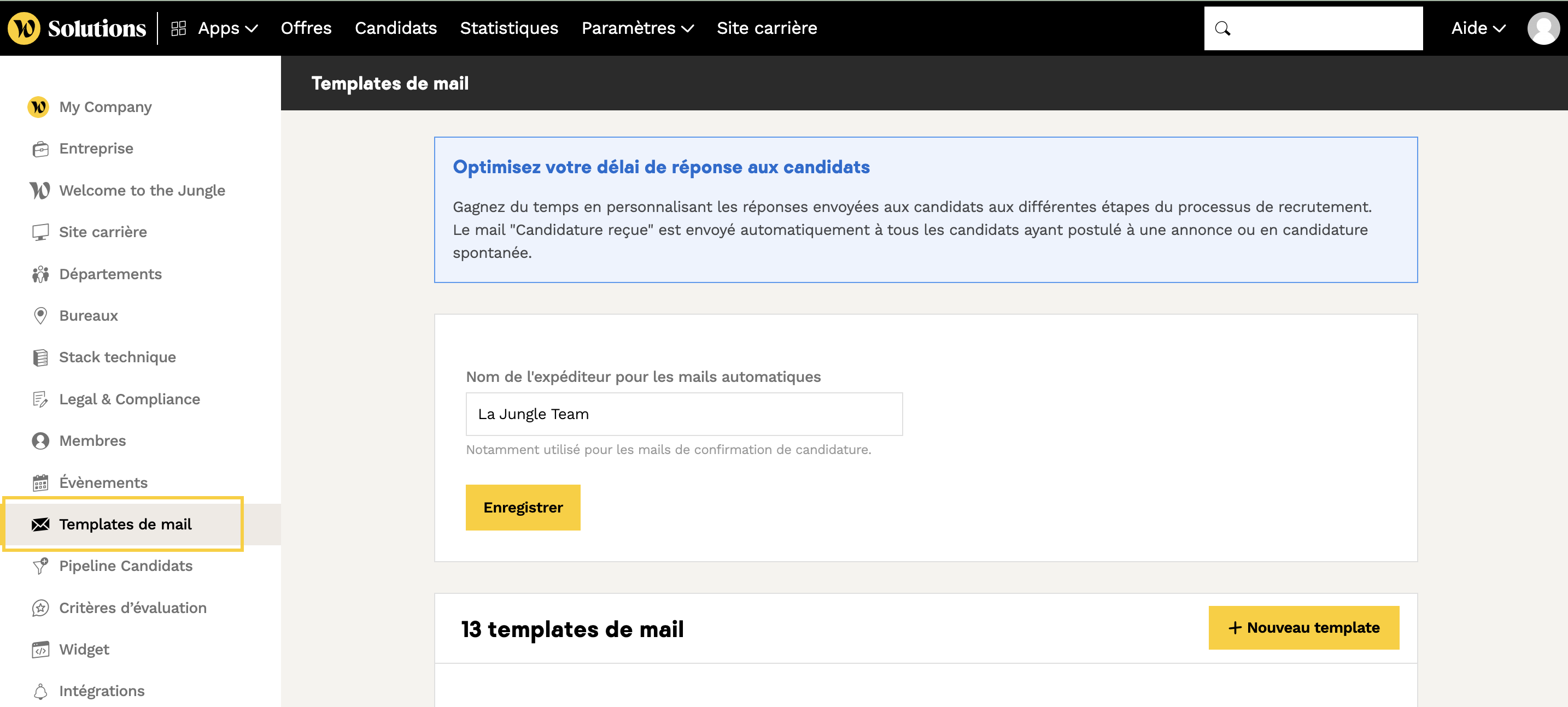 Les templates de mail ont pour objectif de vous faire gagner du temps en personnalisant les réponses envoyées aux candidats aux différentes étapes du processus de recrutement.