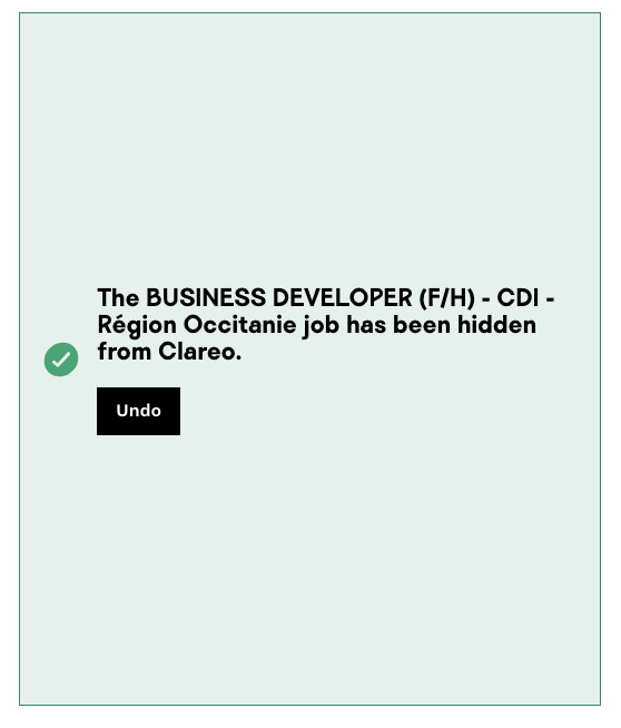 Based on the job you're looking for and your experience, our algorithm submits up to 6 jobs a day that might interest you. You can save these jobs, or even apply for them directly! The suggestions will change according to your searches, the changes you make to your profile and the new opportunities available on our site.