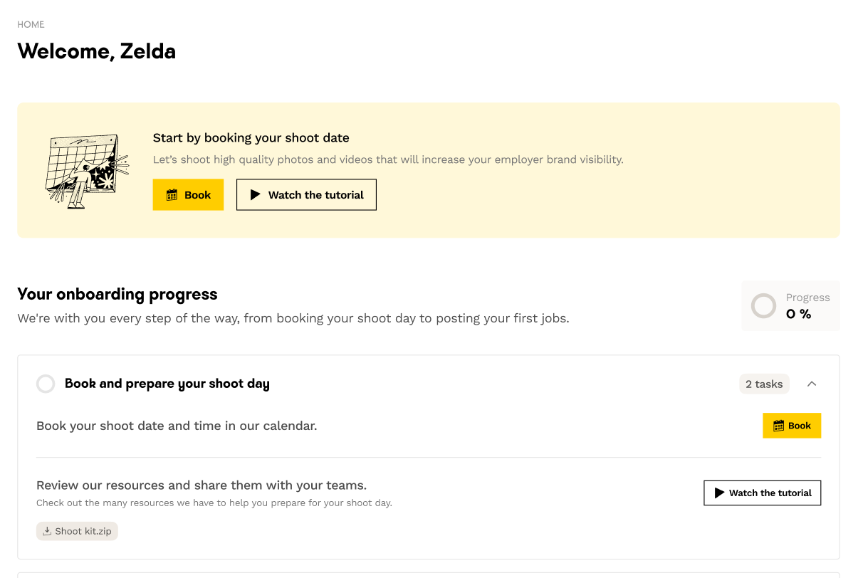 Once the cancellation is confirmed, you will receive an email to confirm this action. The task of booking your shoot on the onboarding page will appear as incomplete: