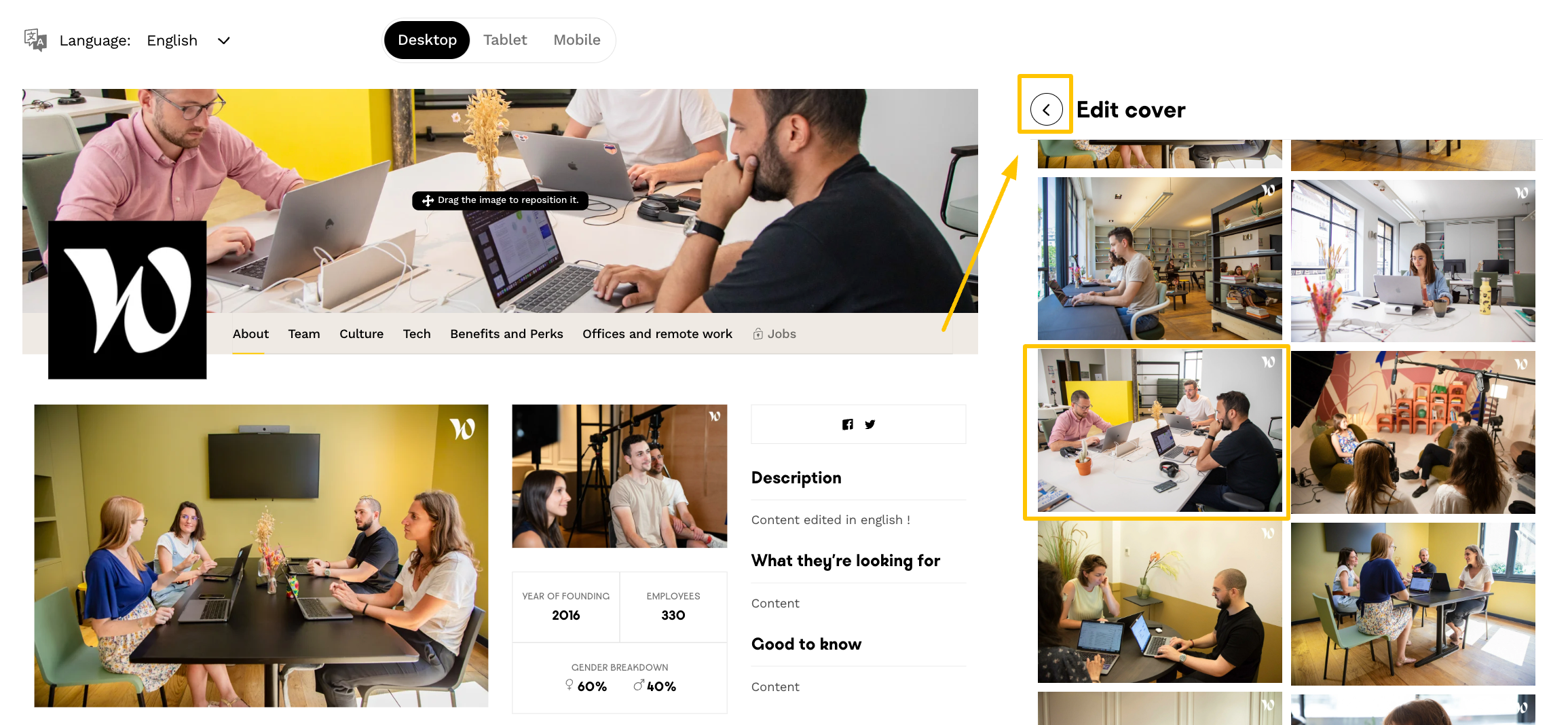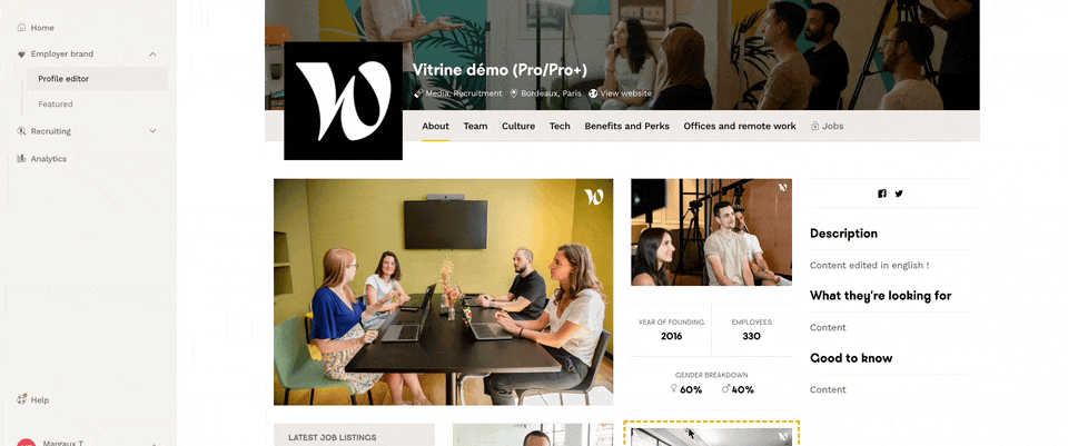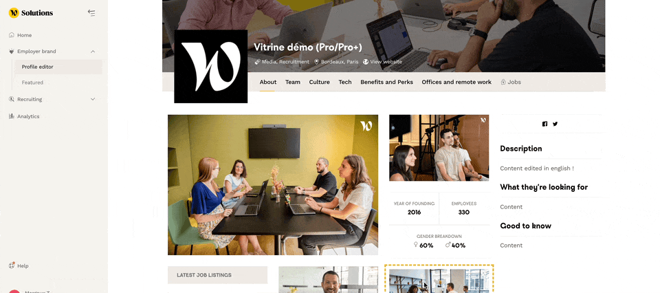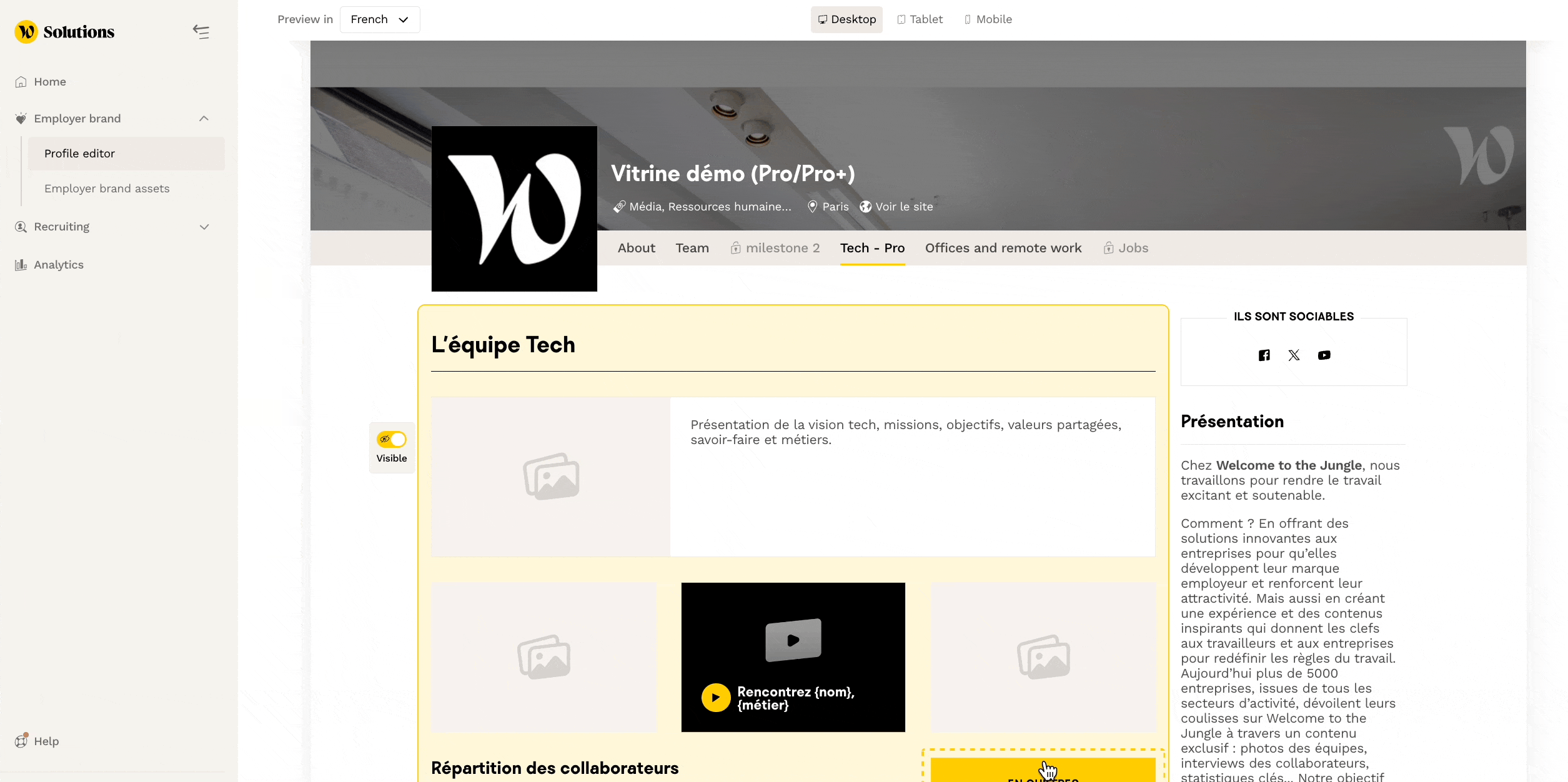 Once your profile is ready, youâll be able to preview and edit it through the Profile Editor! To access the Editor, go to the "Employer Brand" section on the platform.