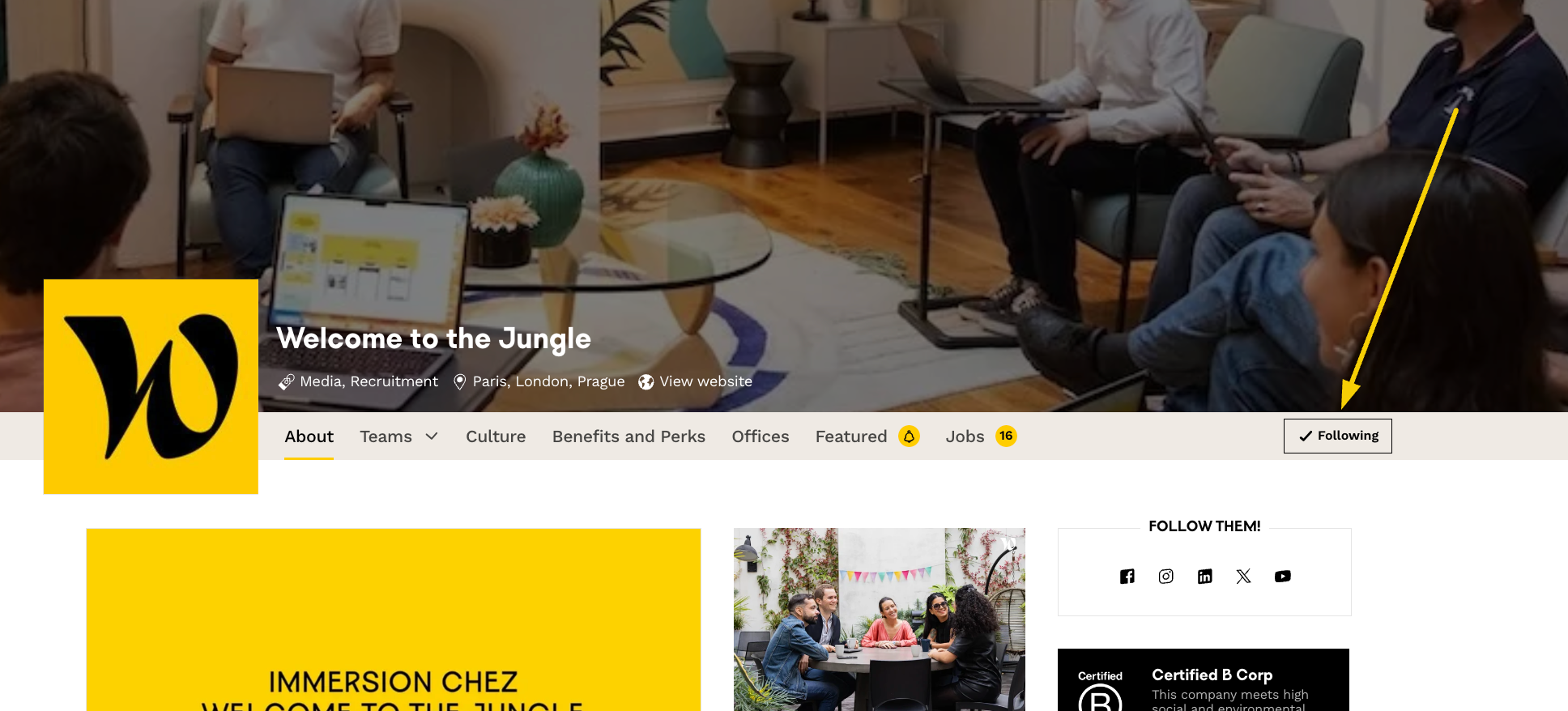You can now be notified of new jobs, articles, or events from your favorite companies by clicking on the Follow button at the top right of each showcase page :
