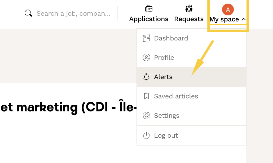 Here you can activate and deactivate your email alerts, but also check your saved searches results in one click: