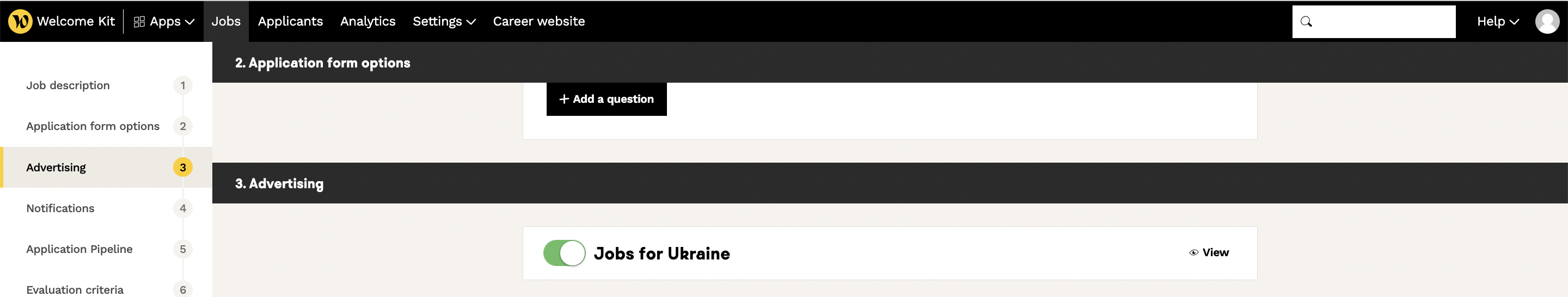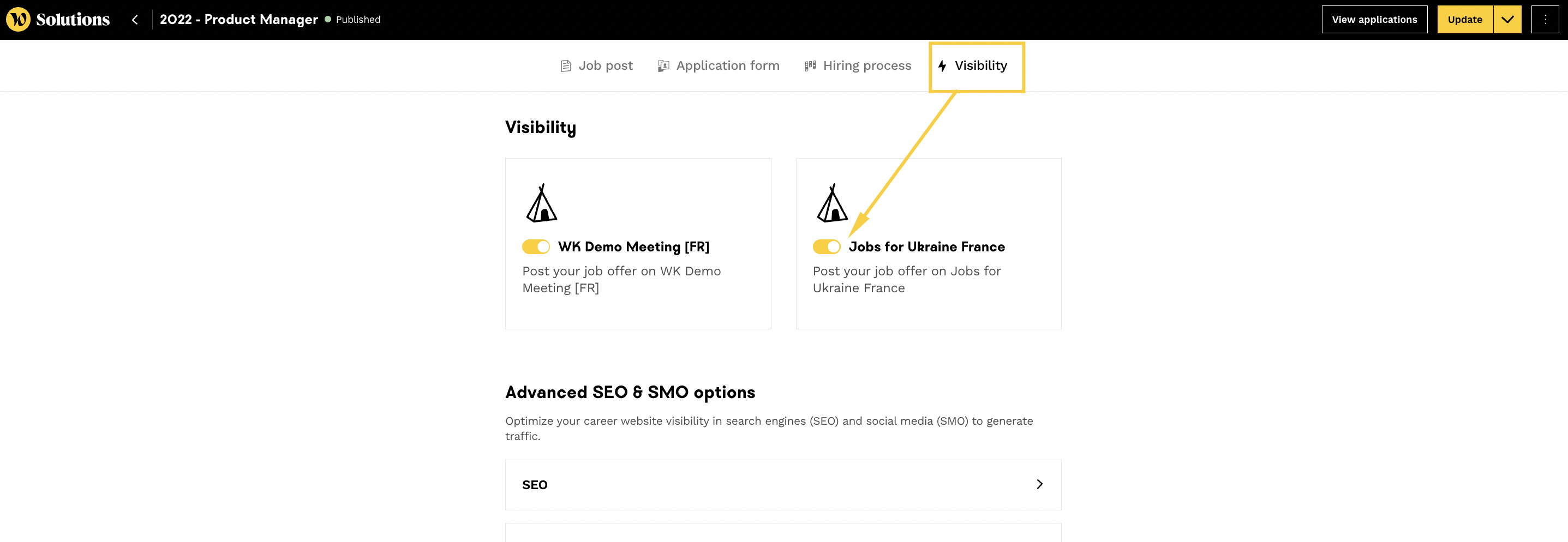 4. Select the job board "Jobs for Ukraine" in step "Visibility".