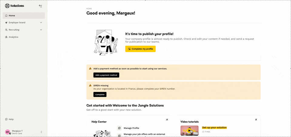 Go to Welcome to the Jungle Solutions and click on “Employer Branding.”