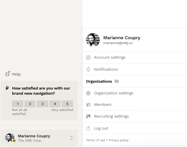 A: Click on your avatar, then select "Recruitment Settings" to manage all Welcome to the Jungle Solutions ATS settings.