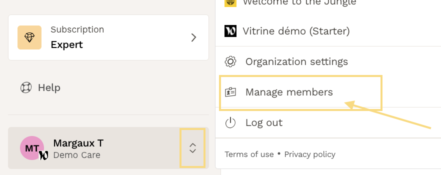 - Go to the "Manage Members" section from the dropdown menu at the bottom left of your screen: