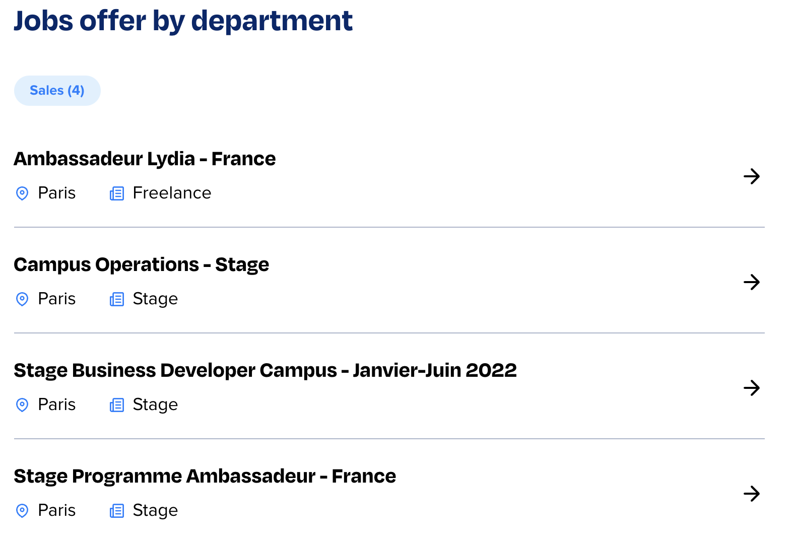 👉 The job widget is a piece of code that is integrated wherever you want on your website. It will therefore require the intervention of a technical team that can fully customize it. The widget can look like this: