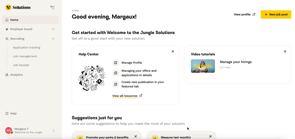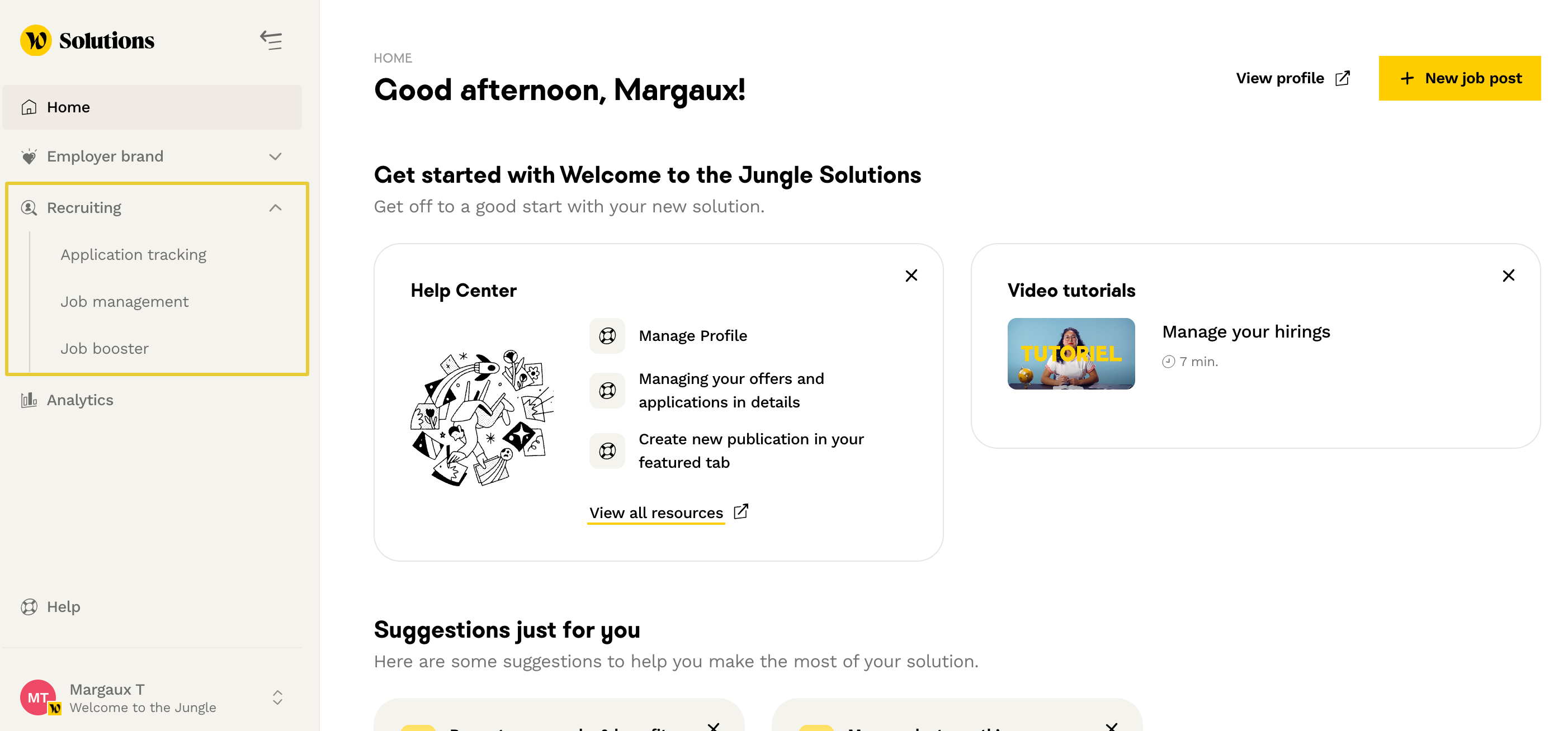 💡 If you want to understand how to access your job posts and candidate pipelines from the Welcome to the Jungle Solutions homepage, this article is for you!