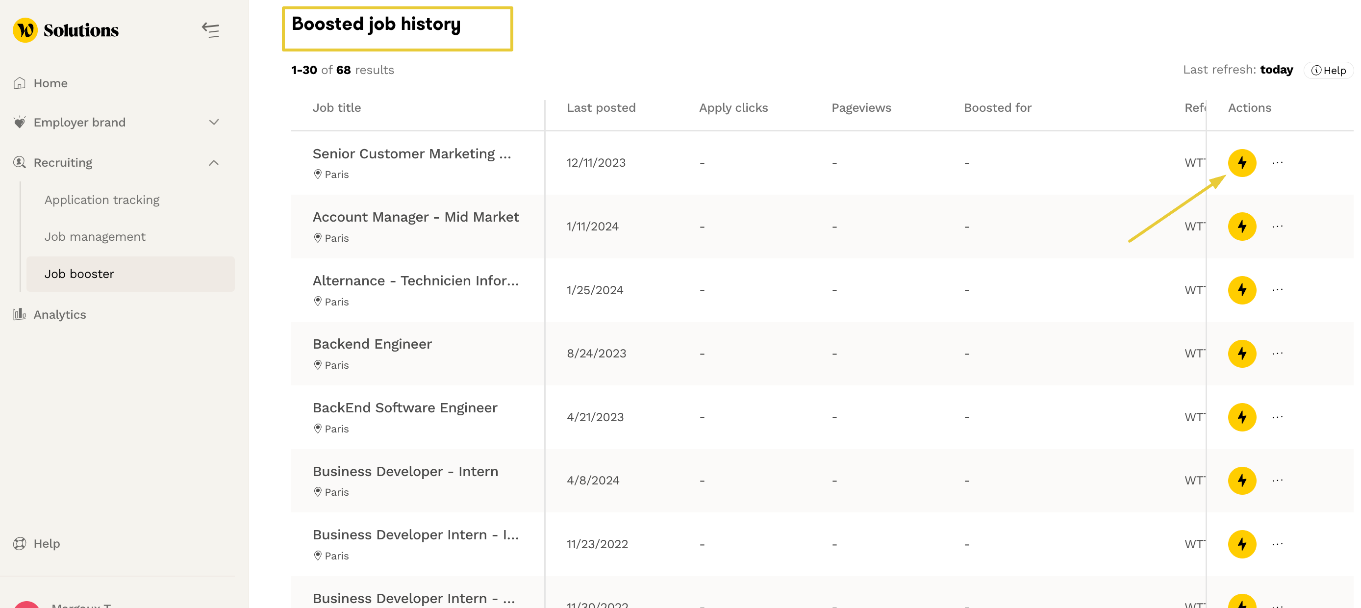If you haven't boosted any listings yet or haven't used all your boosts, you can directly choose the listing to boost from this space by clicking on "Boost a job."