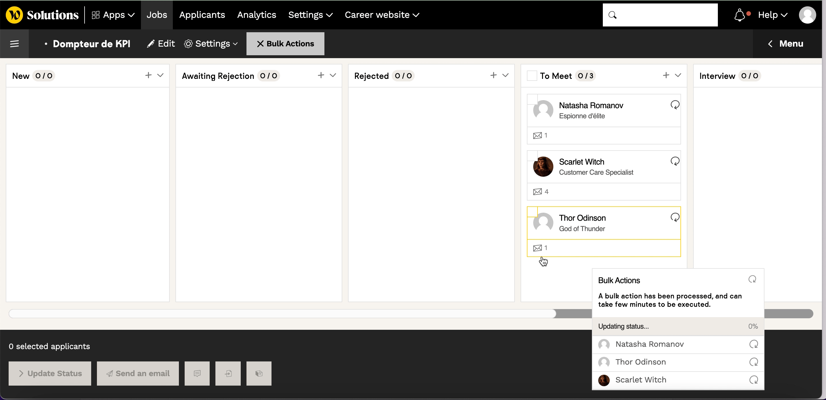 When you regularly receive many applications, use the "To Reject" column to ensure all candidates receive a response rather than leaving applications unanswered.β‘ Optimize Your Time with Bulk Actions