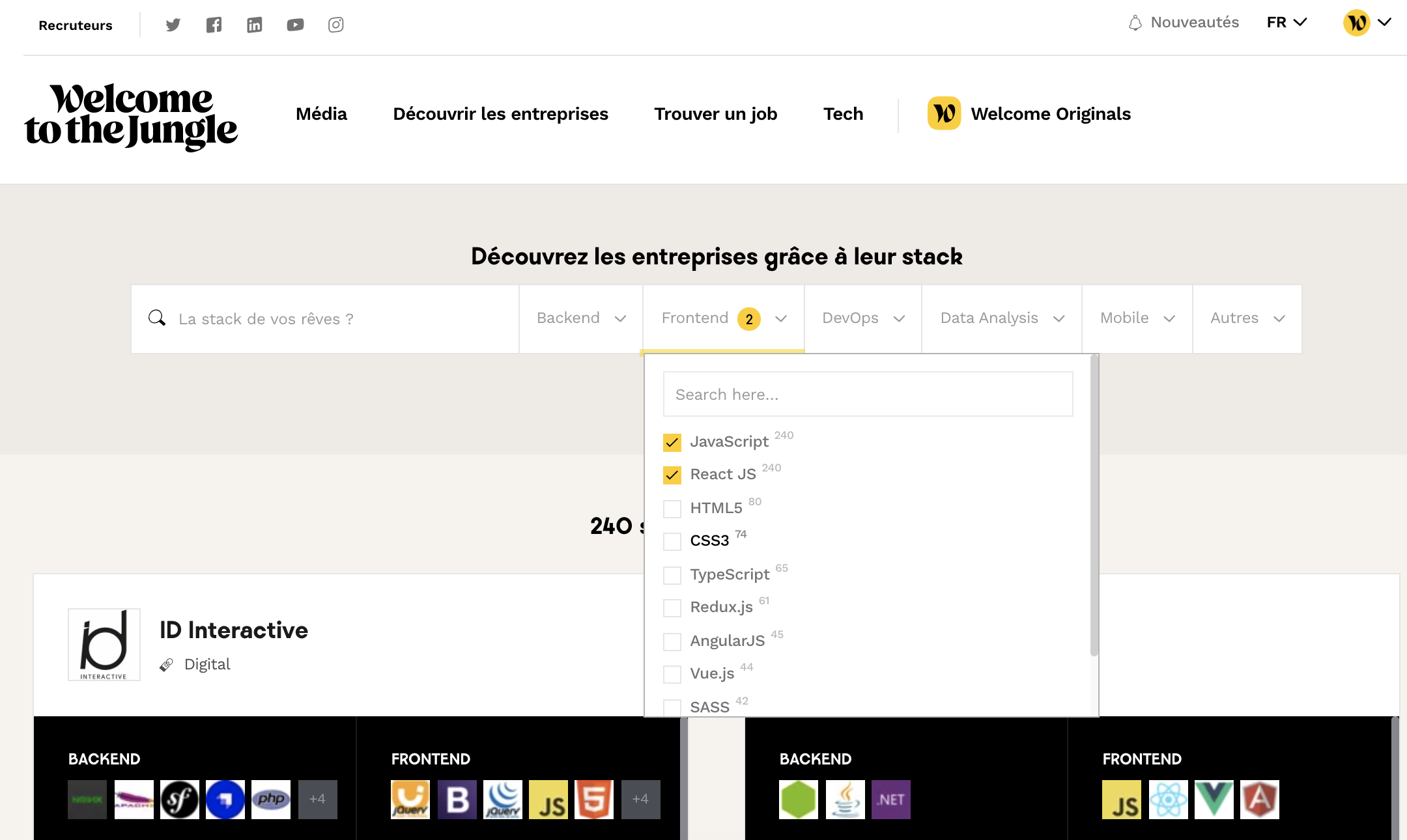 Welcome to the Jungle Solutions ATS allows you to update your Welcome to the Jungle profile tech tab from your dashboard, reference the stacks you use, and be more visible to candidates.