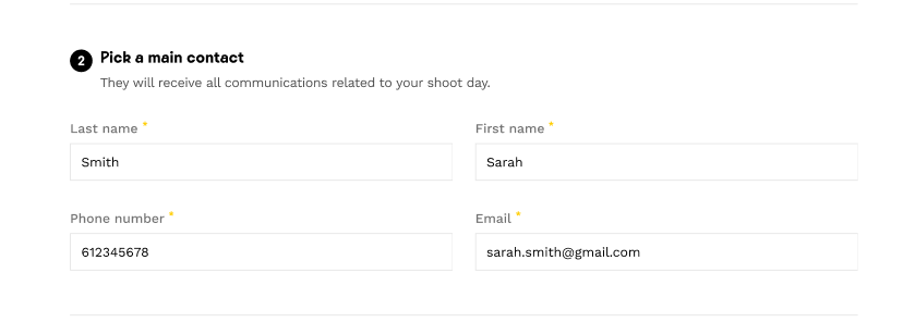 ⚠️ The choice of the project manager is essential, as he or she will receive all communications relating to the photoshoot and will have to be present on site on D-day.