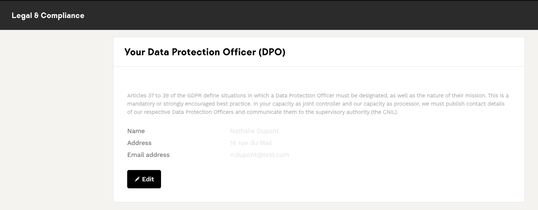 - Click "Edit" in the "Your Data Protection Officer (DPO)" section