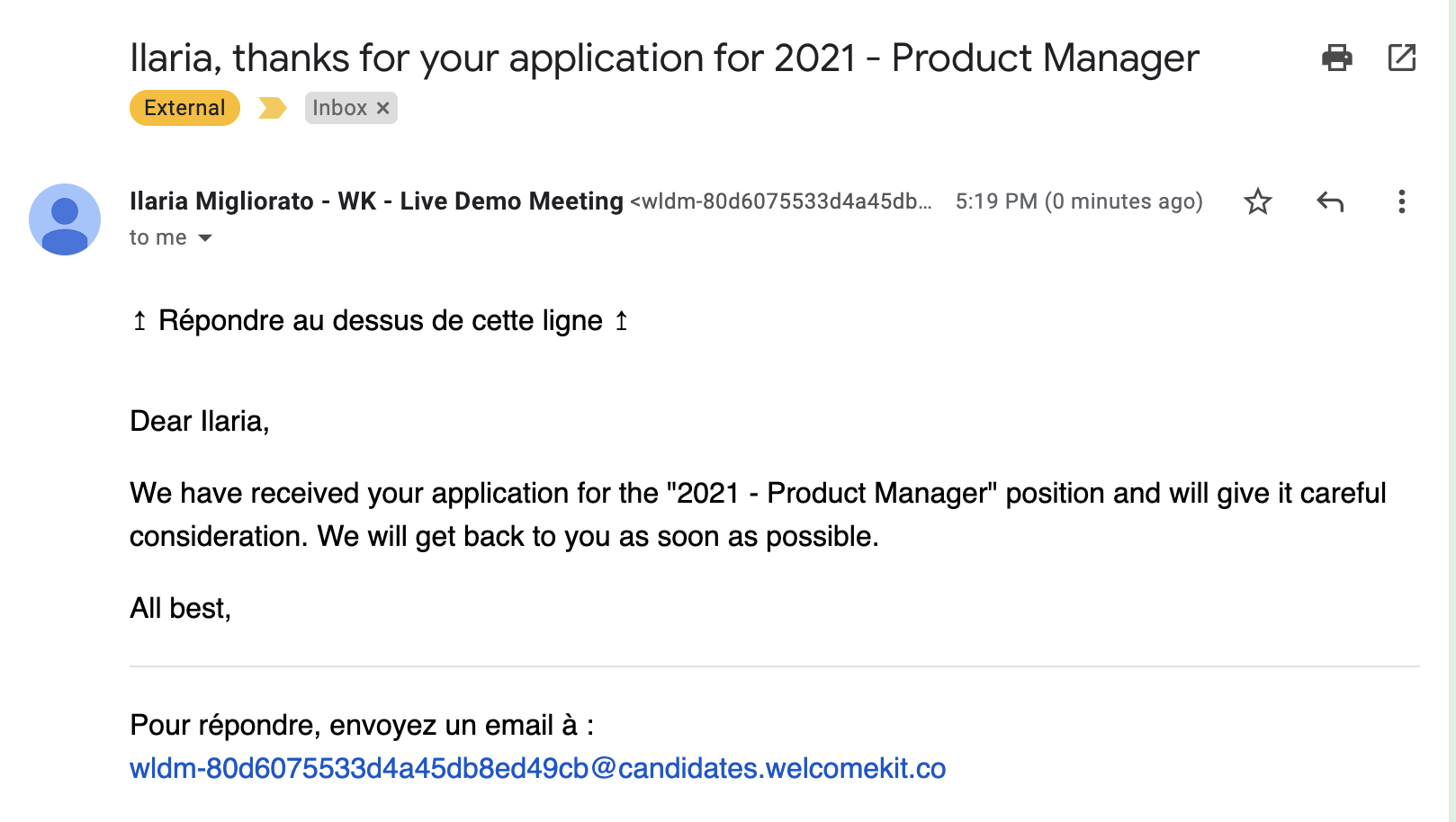 💡 It is possible that some companies take longer than others before coming back to you: in this case, we advise you to send a first reminder at least after 5 days since the sending of your application, or since the last exchange with the recruiter 🙂