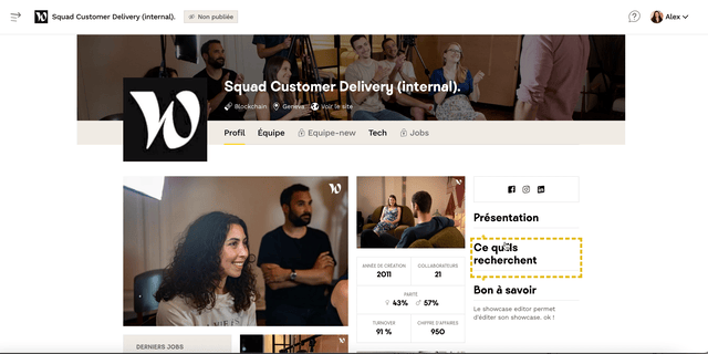 Si par la suite, vous souhaitez modifier / faire Ă©voluer votre vitrine, cet article vous sera utile : Comment modifier votre vitrine avec l'Ăditeur de vitrine Welcome to the Jungle ? đšâđ»