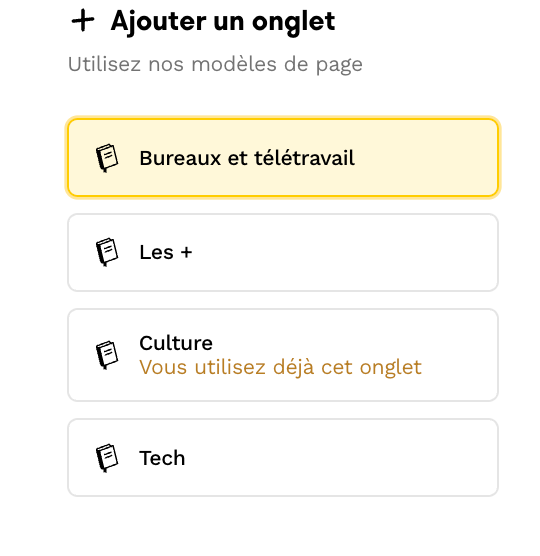 Vous aurez le choix entre différents onglets à activer, votre abonnement vous permet d'en bénéficier de deux maximums :
