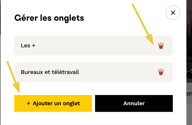 Depuis cette partie, vous pourrez ajouter également un nouvel onglet ou supprimer un onglet actif.