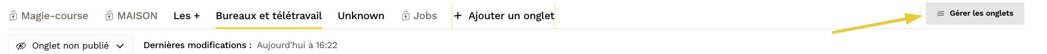 Le temps de complĂ©ter les informations de votre nouvel onglet, vous pouvez laisser celui-ci en "non publiĂ©" et activer la publication quand vous ĂȘtes prĂȘt !