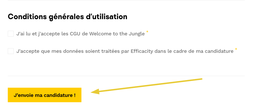 Quand tout est prĂȘt, envoyez votre candidature aprĂšs avoir cochĂ© les petites cases đ :