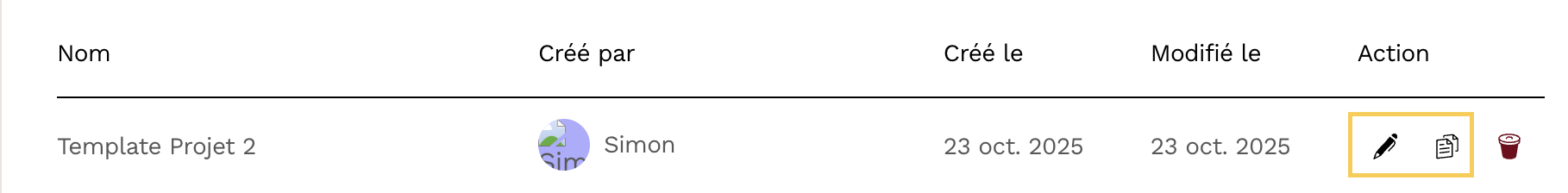 - Dupliquer un modèle en cliquant sur l'icône "double feuille"