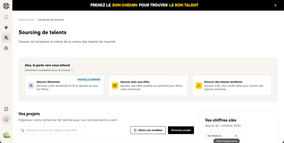 🔐 Attention, le Sourcing de talents est une fonctionnalité payante. Pour y accéder, rapprochez-vous de votre chargé de compte pour acheter votre licence.