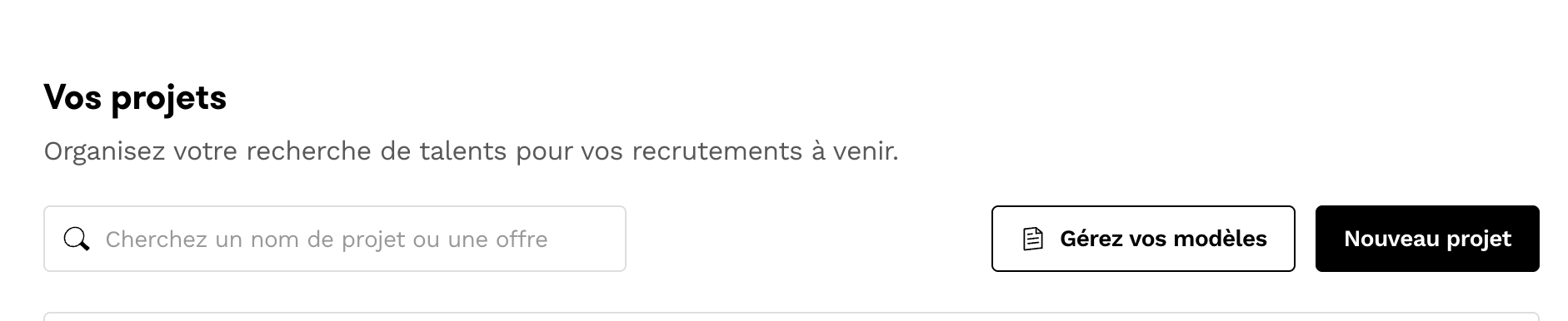 Pour utiliser vos différents modèles lors de vos échanges avec vos talents, vous devez les créer depuis la page d'accueil de Sourcing de talents.