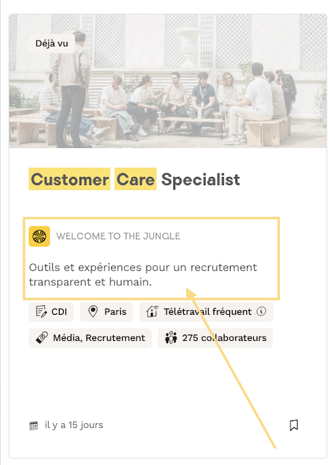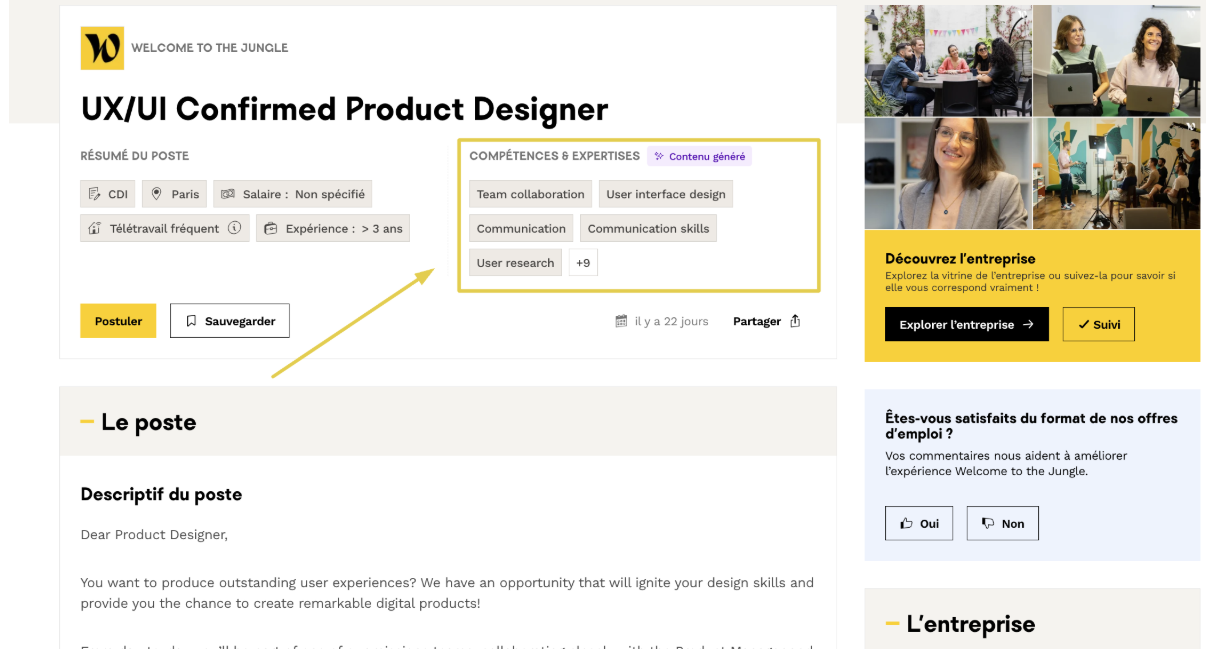 Aidez les candidats à comprendre les activités de votre entreprise grâce à ce résumé généré par notre IA et modifiable depuis la partie Contenus additionnels