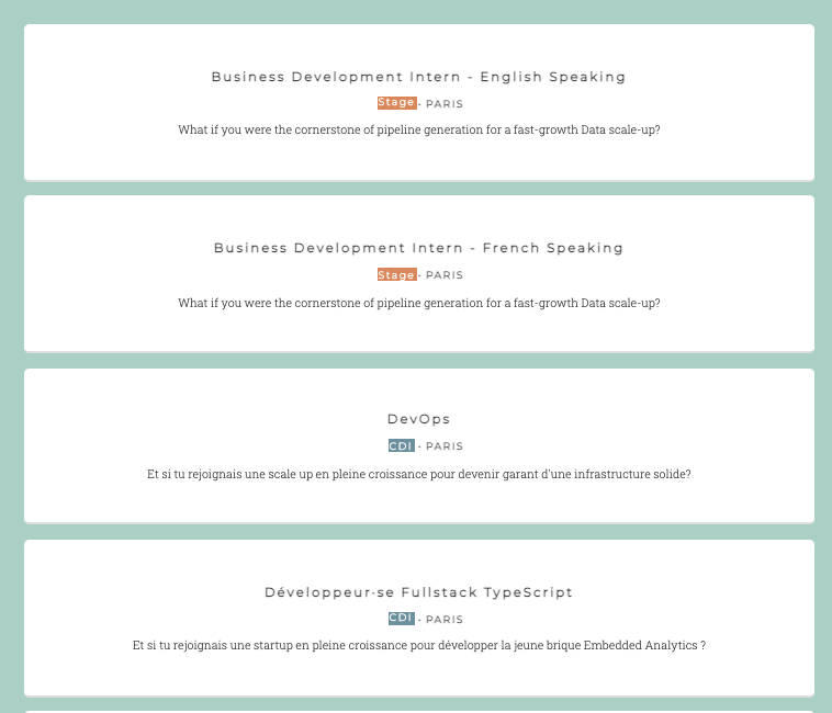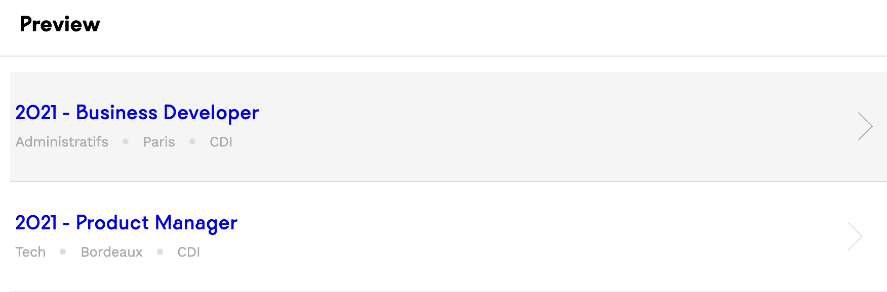 Le widget offres permet donc de faire apparaître en temps réel toutes les offres d'une entreprise publiées sur Welcome to the Jungle, directement sur son site Internet.