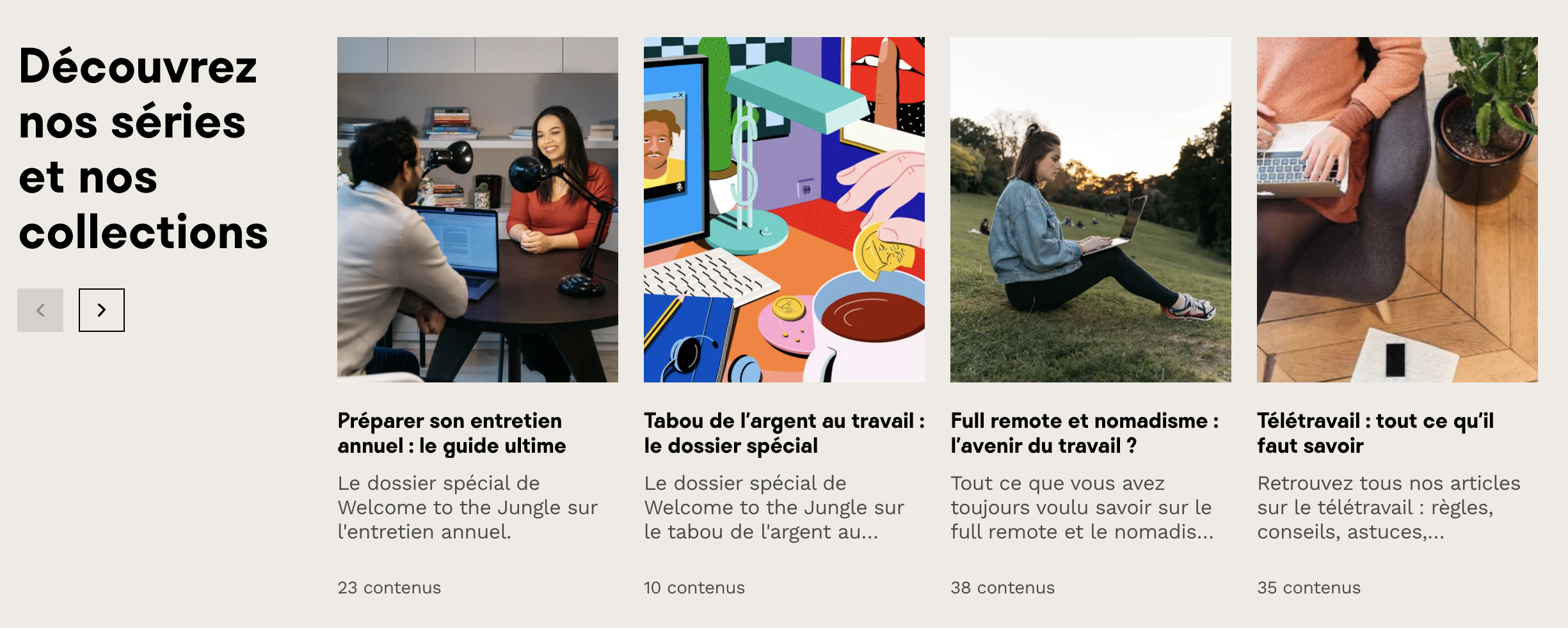 Notre équipe de journalistes et écrivains a créé pour vous, nos lecteurs, des collections d’articles sur les sujets les plus populaires et controverses : l’entretien annuel, l’argent, le full remote, le télétravail...