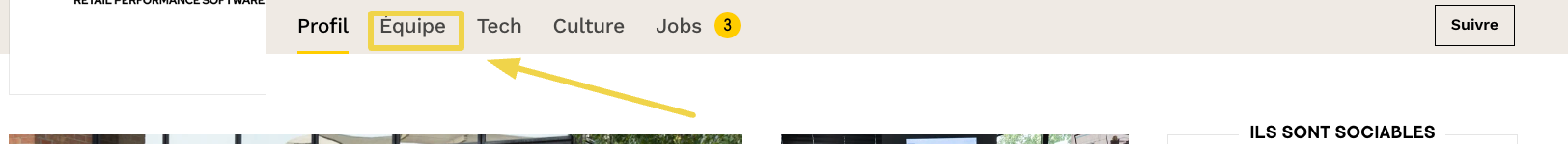 L’onglet Equipe est situé à droite de votre onglet Profil. C’est souvent le deuxième onglet le plus consulté par les candidats, ce qui justifie de lui accorder une attention particulière.