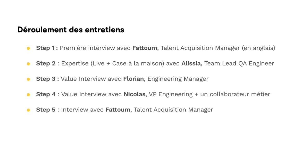 - L’enjeu de chaque entretien (ex: expertise métier, valeurs, étude de cas…)