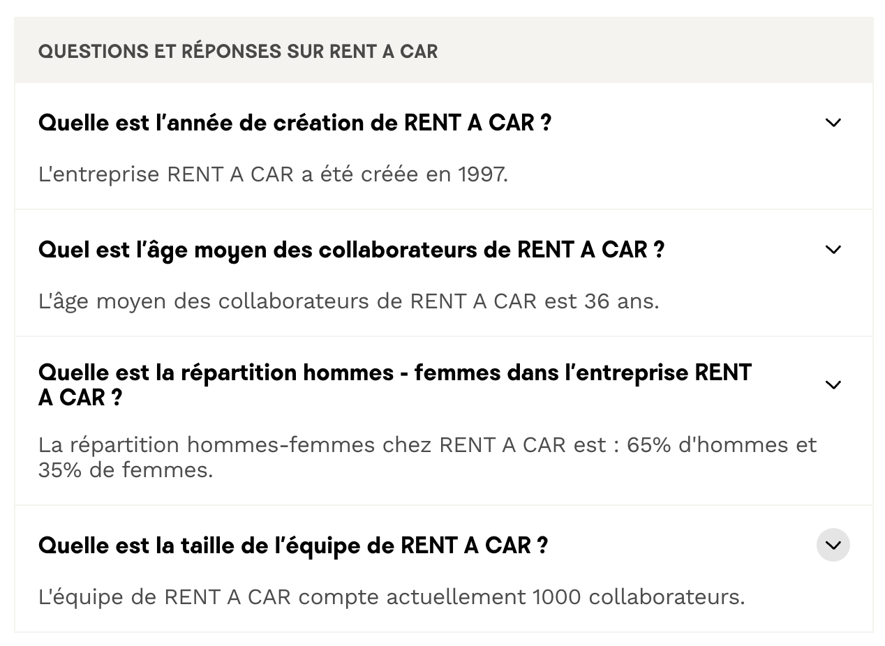 Sur chaque vitrine dâentreprise, le bloc de chiffres clĂ©s est uniforme pour offrir une grille de lecture homogĂšne aux candidats, et leur permettre de situer en un coup dâĆil les dates et indicateurs clĂ©s de votre entreprise.