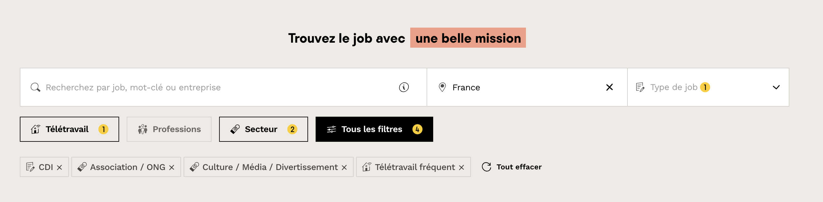 - Le job recherché (intitulé de poste, localisation, type de contrat ...)