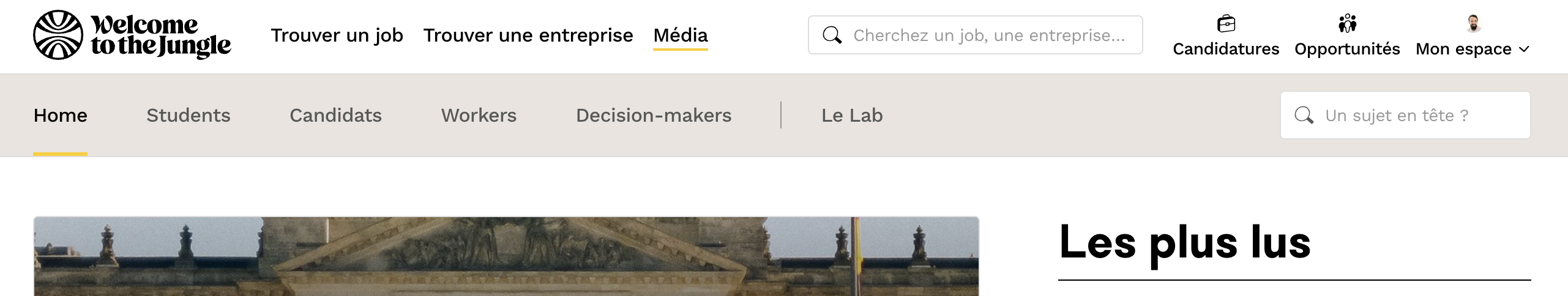 Welcome to the Jungle n'est pas seulement une plateforme de recrutement, mais aussi, et surtout, un média sur l'emploi. Sur notre page Média, vous pouvez trouver des milliers d'articles divisés en différentes rubriques :