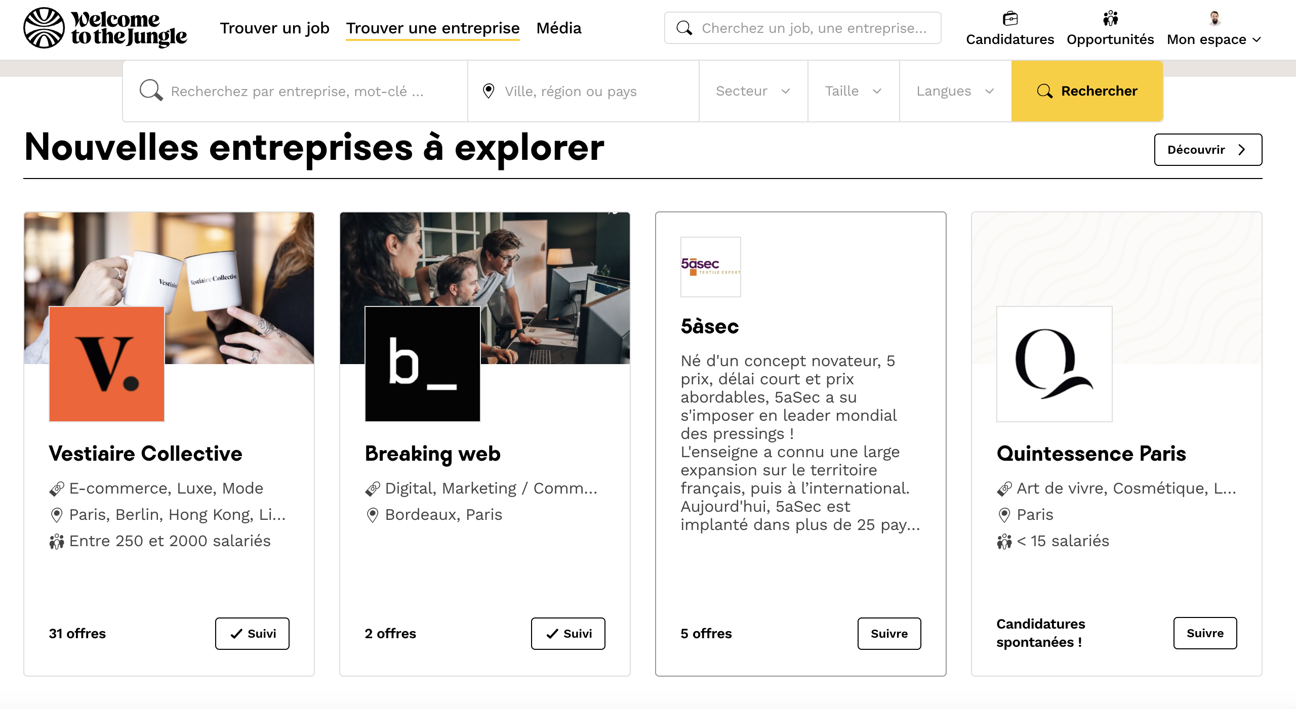 đ Pour en savoir plus sur les pages des entreprises qui recrutent sur Welcome to the Jungle et toutes les informations que vous pouvez y retrouver, vous pouvez consulter cet article !